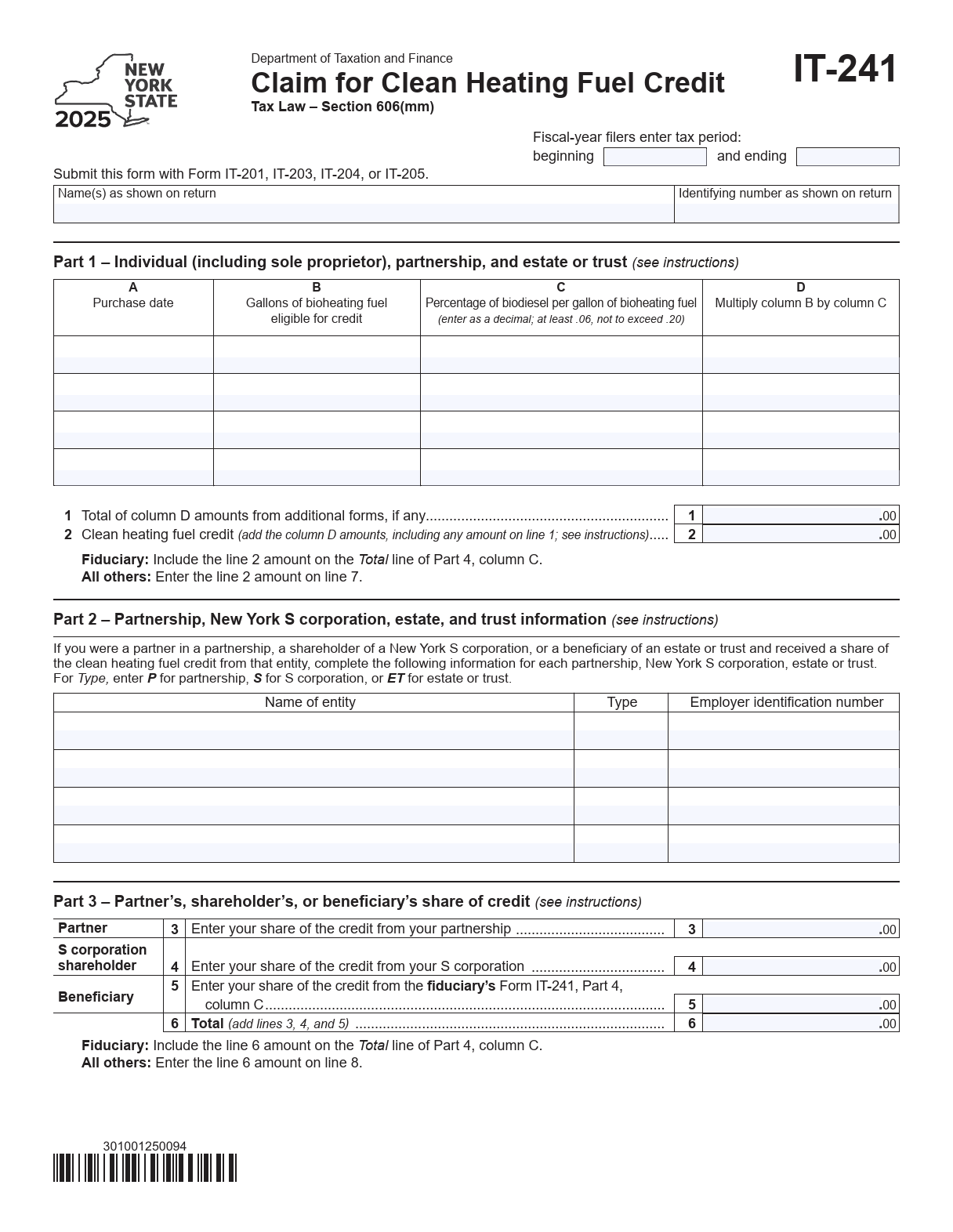 To get the tax credit, log into your My Account Portal to export your delivery and transaction history. This will show you how much fuel you received and at what biofuel blend level, and provide you with access to your past invoices. Learn more about the record keeping needed to claim the tax credit. You can then use this data to complete Form IT-241 (personal) or Form CT-241 (corporate). (Please review all materials with a qualified tax professional.)